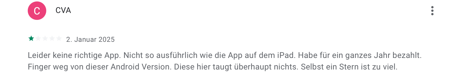 In den Playstore Bewertungen hat die App auch sehr schlecht abgeschnitten