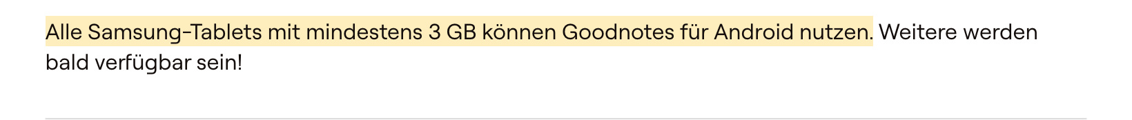 Zuerst habe ich mich vergewissert dass es stimmt, und auf der Website von Goodnotes steht das Tatsächlich! Leider gibt es das noch nicht so lange, weshalb ich nicht viele Informationen im Internet gefunden habe. Anscheinend kann man dass tatsächlich herunterladen, aber dass Tablet muss (Solange ich das richtig verstanden habe) mindestens 3 GB haben, und acht Zoll groß sein. (Das zweite hab ich nicht verstanden und ist vielleicht auch bullshit?)